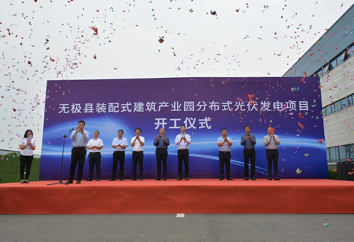| 5月19日上午,由市政建設(shè)總公司所屬能源投資發(fā)展有限公司投資建設(shè)的無極縣裝配式建筑產(chǎn)業(yè)園分布式光伏發(fā)電項(xiàng)目開工建設(shè)。市國(guó)資委黨委委員、副主任楊劍,城發(fā)投集團(tuán)黨委委員、副總經(jīng)理李宗志,市政建設(shè)總公司總經(jīng)理馬瑞山,市住建集團(tuán)董事長(zhǎng)張瑞彬等領(lǐng)導(dǎo)及施工單位、監(jiān)理單位代表出席開工儀式。李宗志同志宣布項(xiàng)目開工。